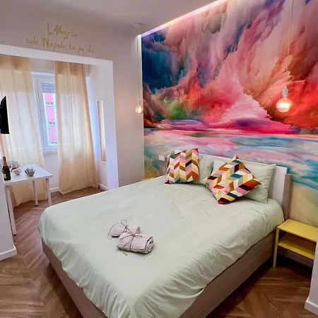 Además de un vestidor, las habitaciones en el B&B Allegrianapoletana están equipadas con TV de pantalla plana con canales vía satélite. Además de minibar y servicio de tetera/cafetera, también dispone de instalaciones esenciales como climatizador. Los baños tienen un bidé, un inodoro separado y ducha, así como secador de pelo y toallas para mayor comodidad. Muchas habitaciones dan al mar.